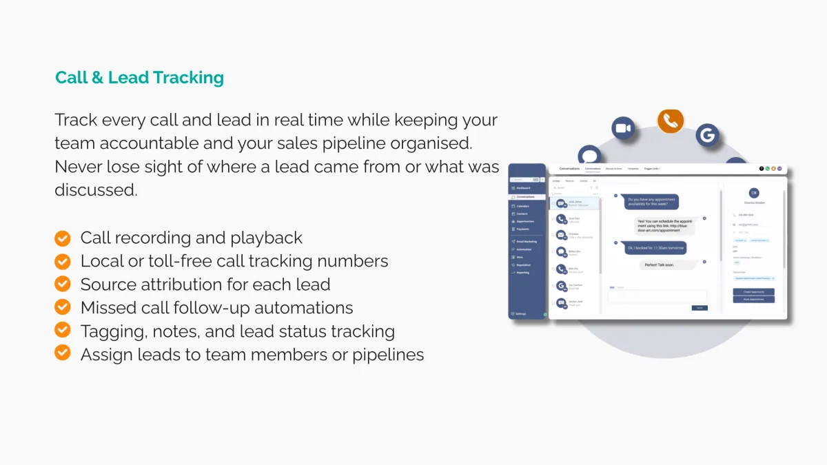 Track every call and lead in real time while keeping your team accountable and your sales pipeline organised. Never lose sight of where a lead came from or what was discussed.